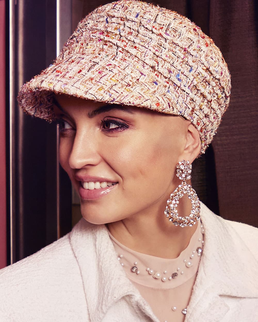 Christine Headwear – BOHO-Pandora-Schirmkappe – Apricot-Bouclé