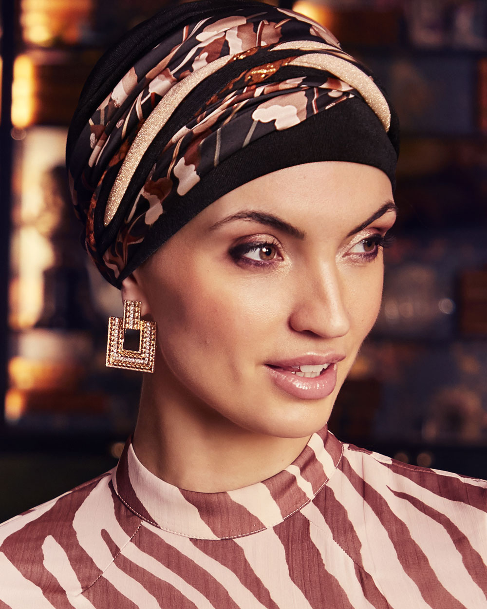 Ihr könnt den Turban auch solo tragen oder das Stirnband mit anderen Turbanen oder Perücke kombinieren oder den Turban mit den separaten, langen Bändern aus der BOHO-Kollektion tragen.