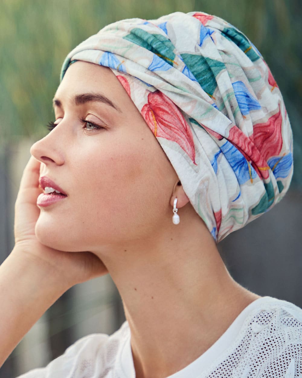 Christine Headwear – Leinen-Turban SHAKTI – Tropical-Blossoms