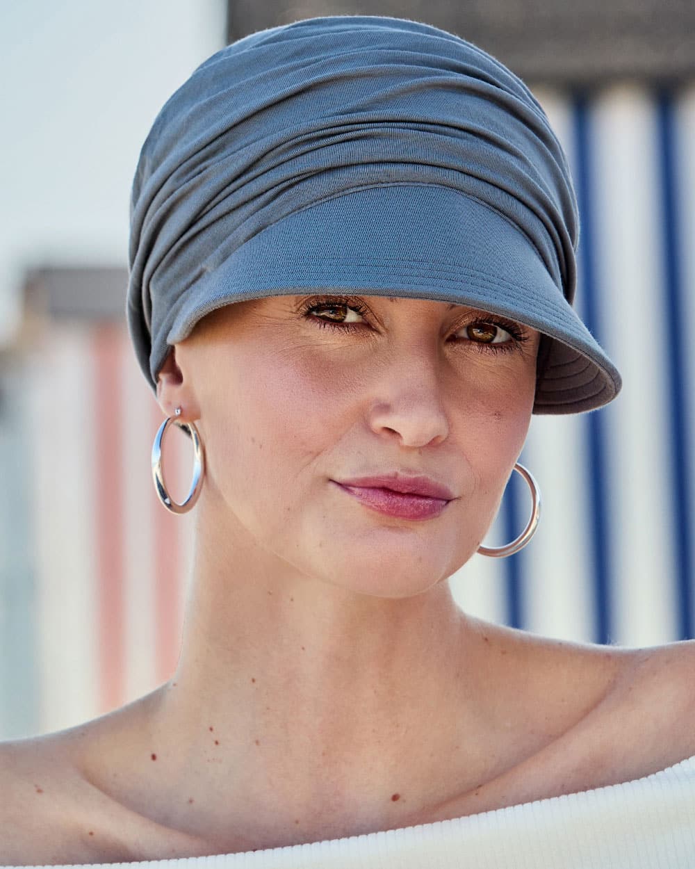 Vorn ist der Oberstoff in lockere Falten gelegt. Das schafft Volumen und einen sommerlich leichten Style. Im Nacken ist das SOLANA-Cap lang genug geschnitten, um alles schön abzudecken. Einfach aufsetzen & fertig.