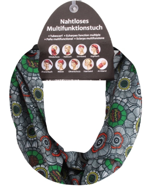 Schlauchtuch in verschiedenen Grau-Tönen mit Grün, Rot, Gelb, Weiß